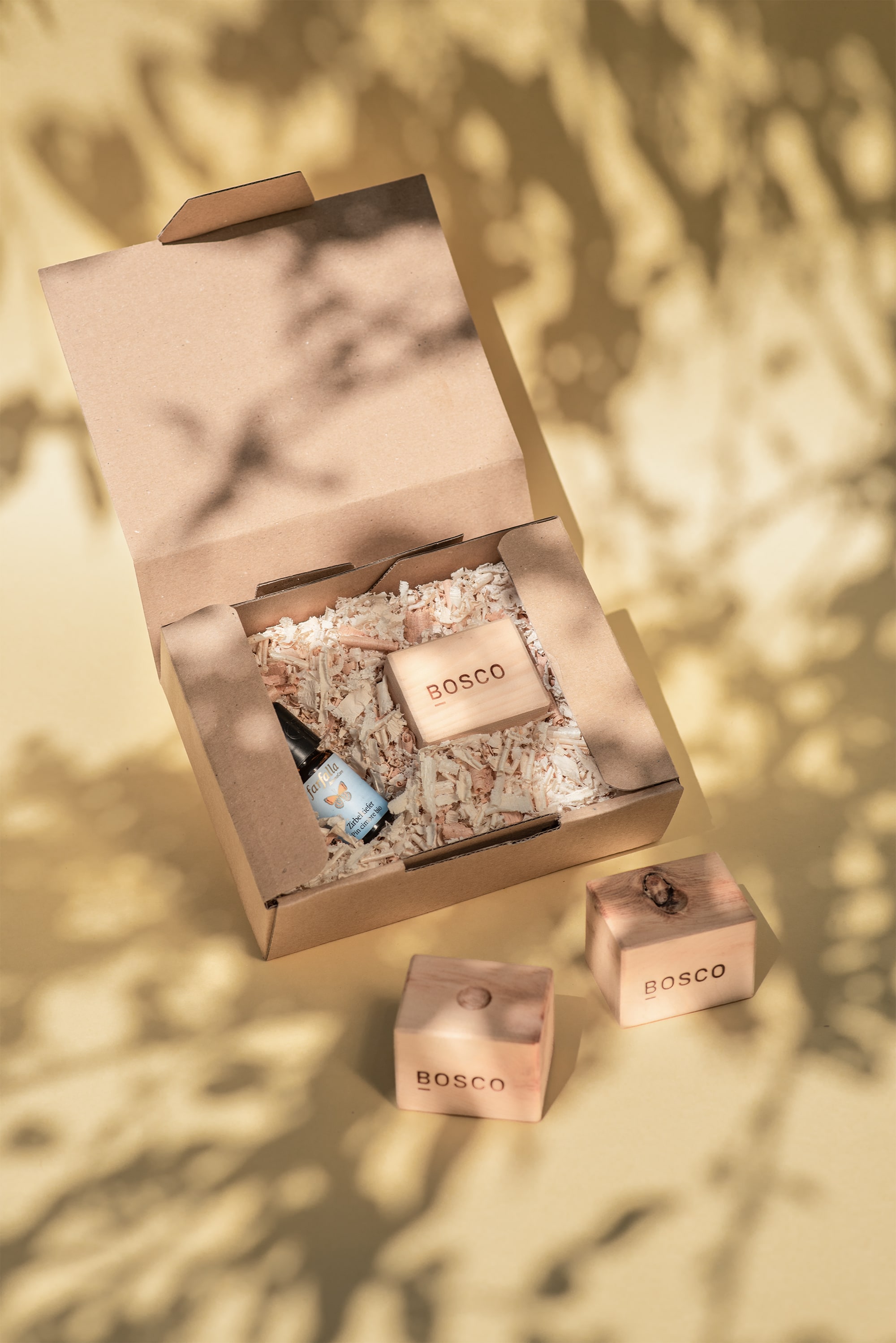 Im Set enthalten ist ein Arvenklötzli mit einer kleinen Mulde. In diese kann vom ebenfalls im Set enthaltenen Arvenöl hinengeträufelt werden. Dadurch verstärkt sich der Duft und die erholsame und erdende Wirkung.