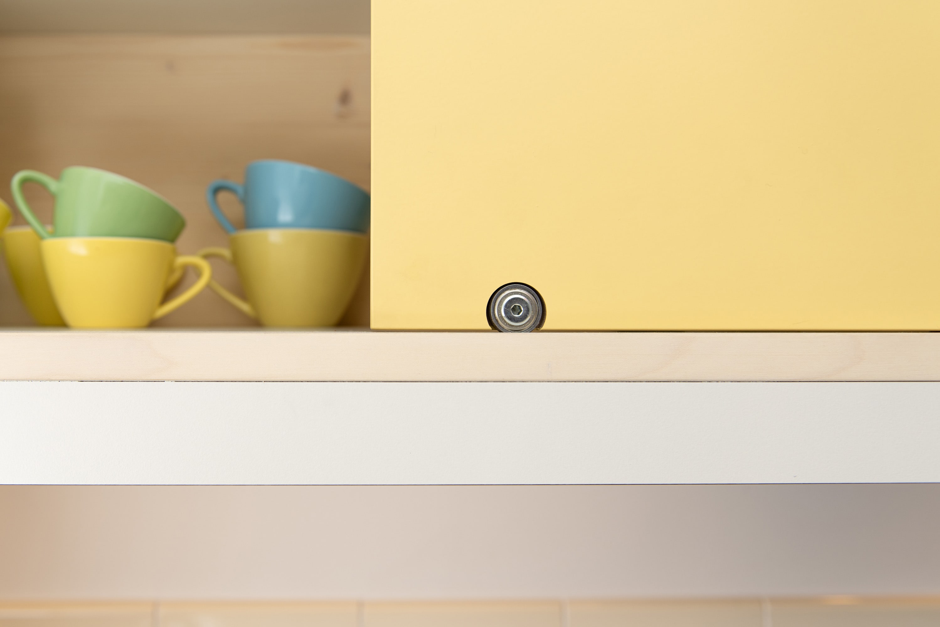 Das Schiebetürmöbel mit einem System aus kleinen Kugellagern ersetzt den klassischen Oberschrank.