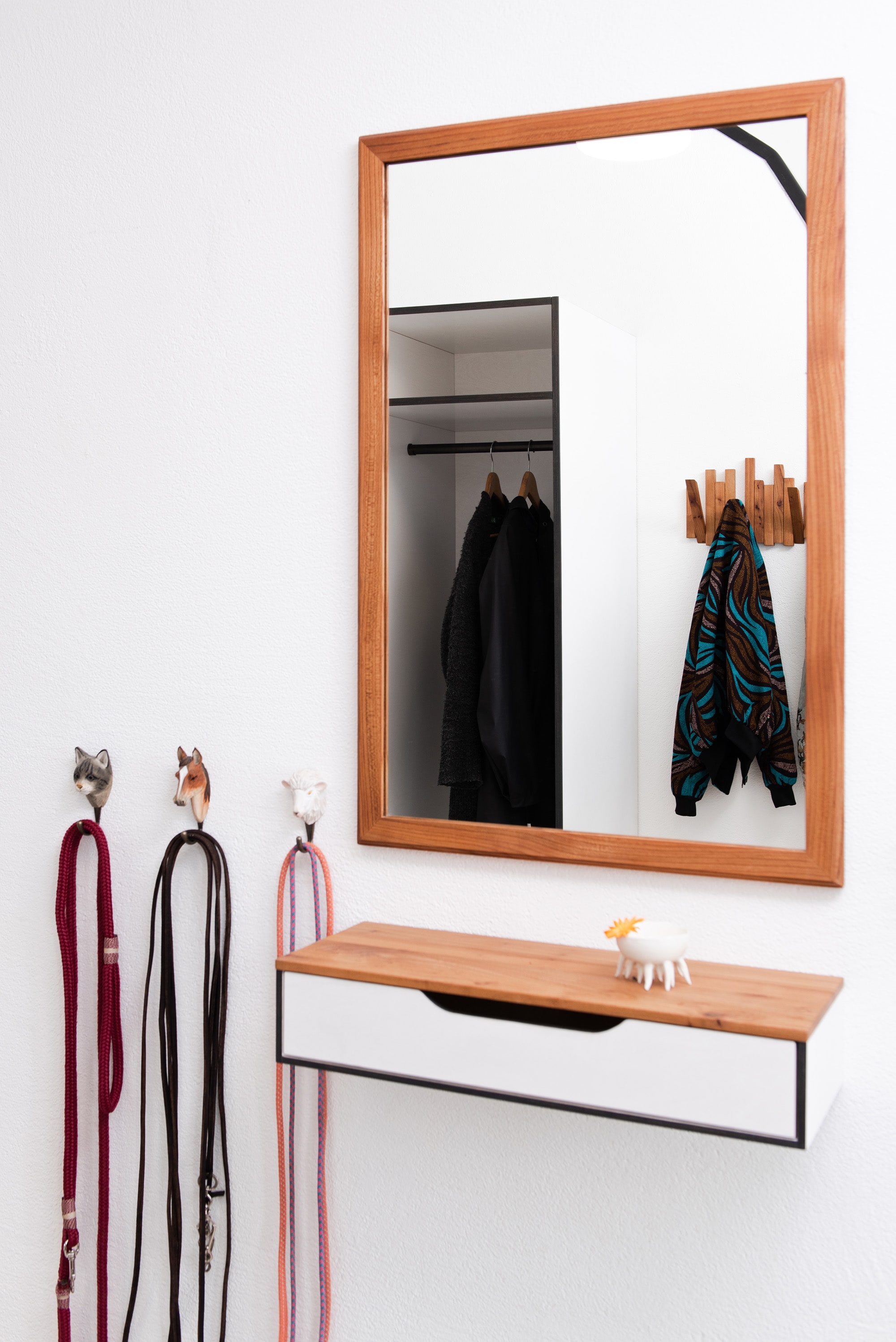 Der Einbauschrank besteht aus zwei Bereichen. Der offene Teil bietet Platz für die Jacken und Mäntel des täglichen Gebrauchs. Der geschlossene Teil sorgt für Ordnung im Eingangsbereich.
