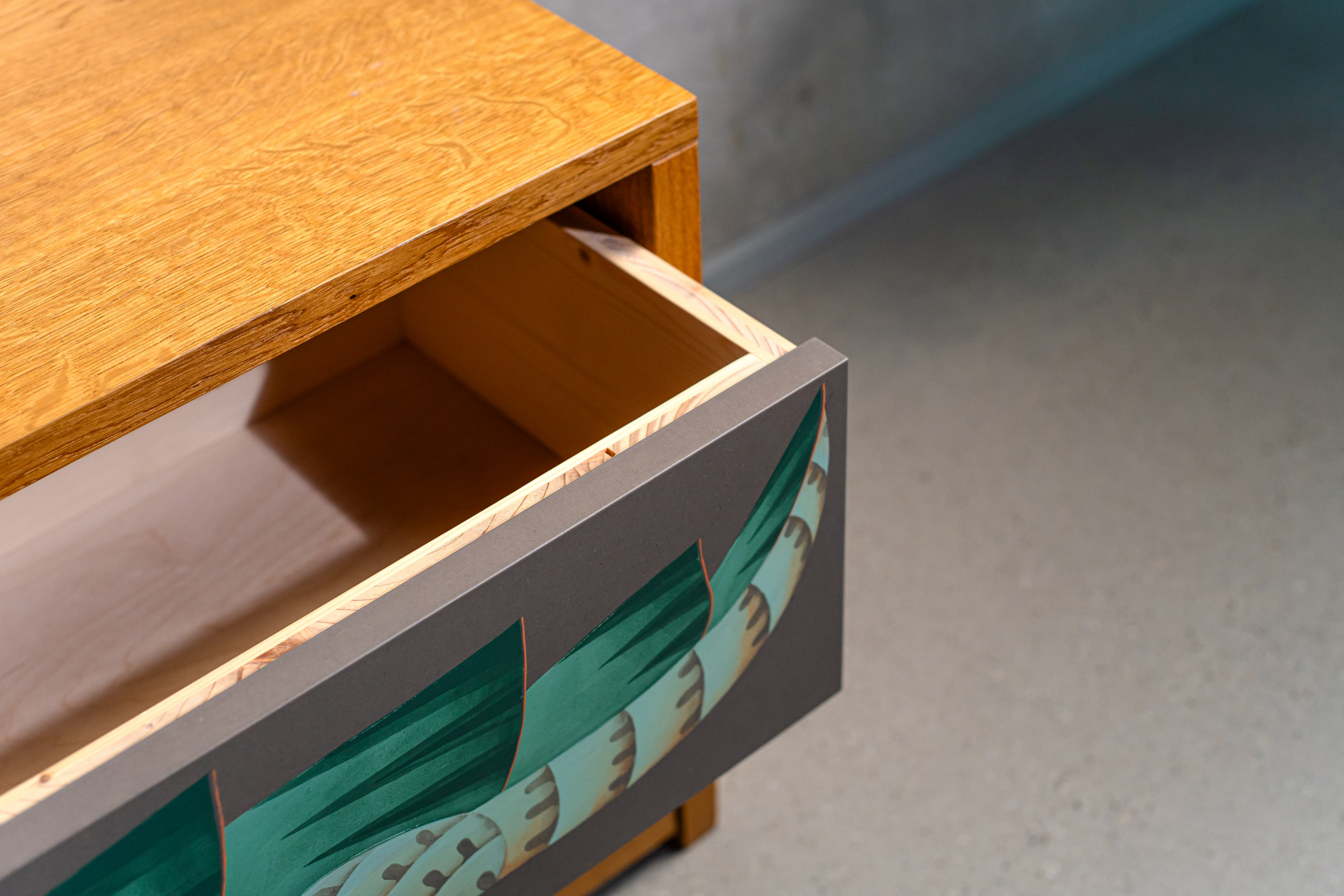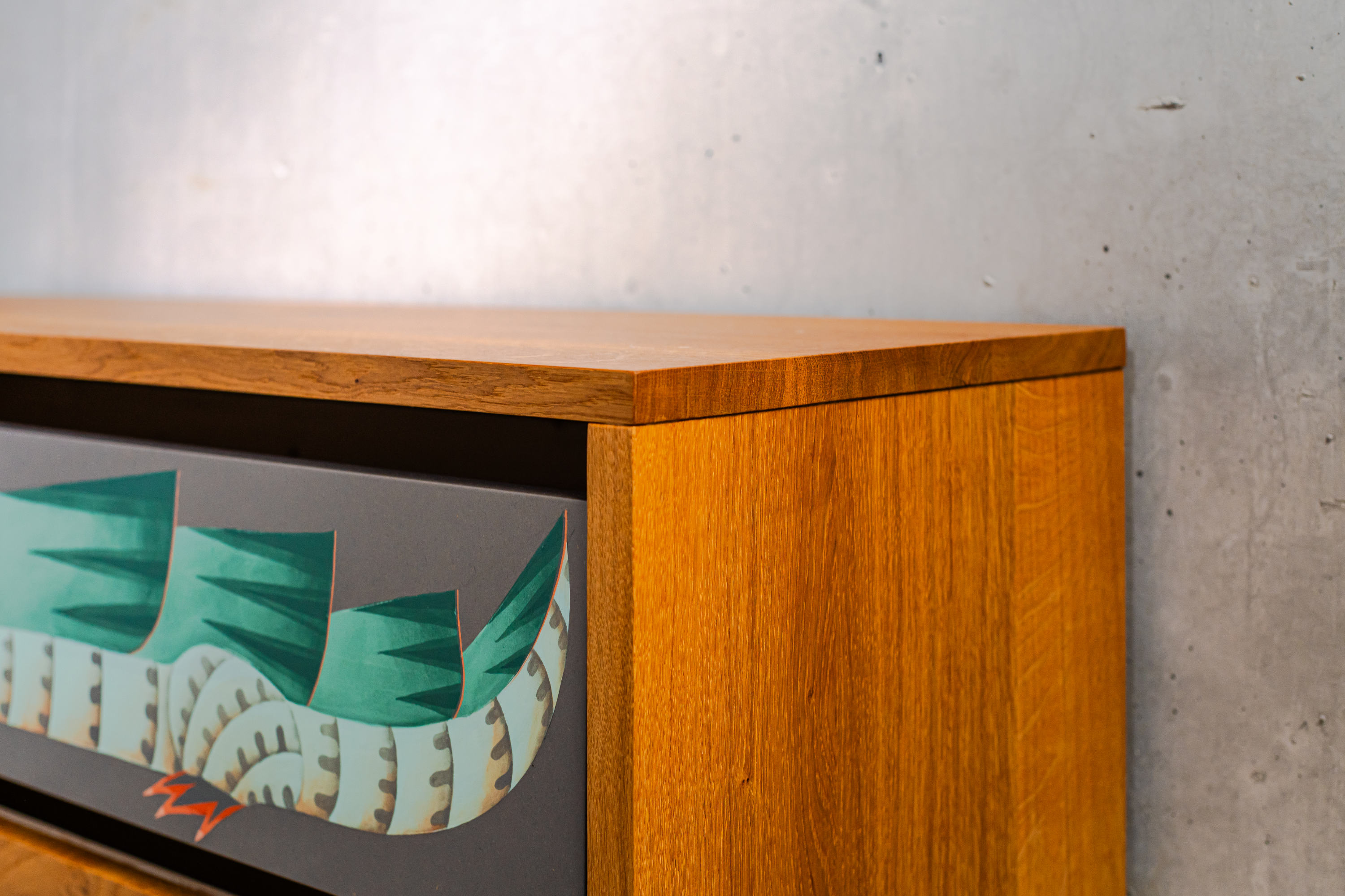 Manche Möbel werden zu ganz besonderen Lieblingsstücken. In Zusammenarbeit mit der in Berlin ansässigen Künstlerin Polina Soloveichik entstehen immer wieder individuell bemalte Fronten. Ob Tiermotive, florale Muster oder ganze Szenen - alles ist möglich.